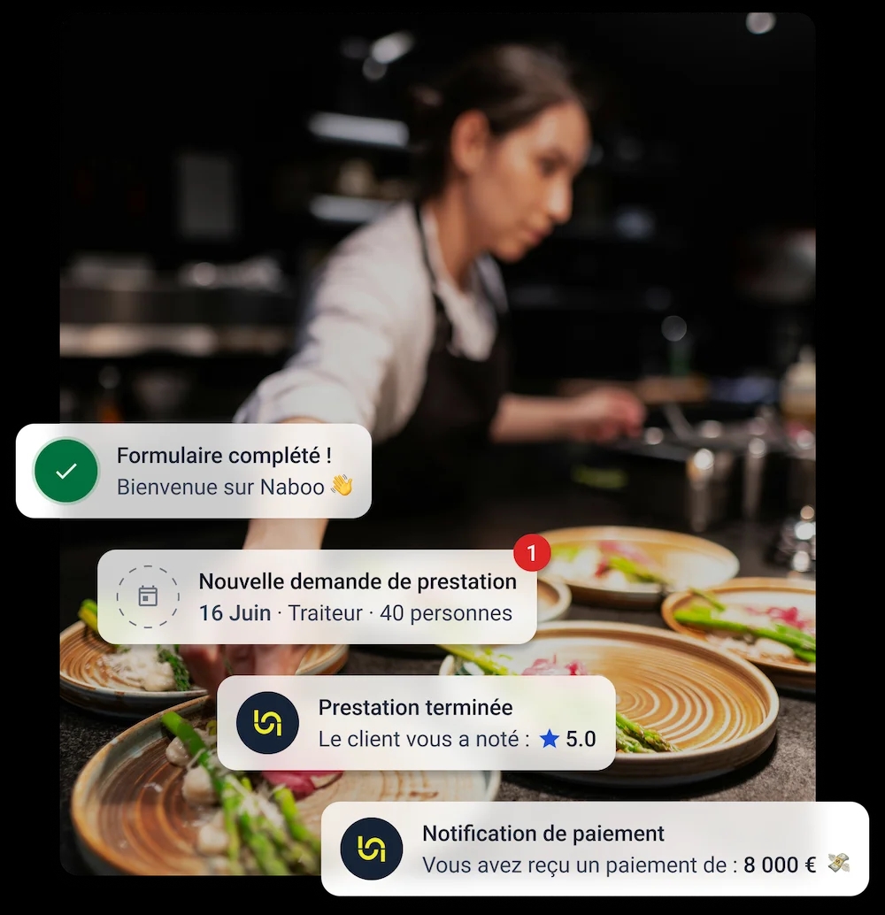 Le référencement sur Naboo est gratuit et sans engagement. Une commission d’apport d’affaires est prélevée sur le montant de vos prestations lors de chaque réservation.